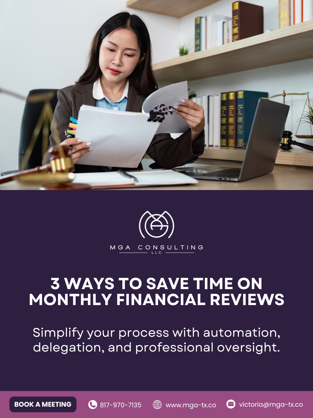 By combining automation, thoughtful delegation, and professional guidance, MGA Consulting makes monthly reviews a breeze.