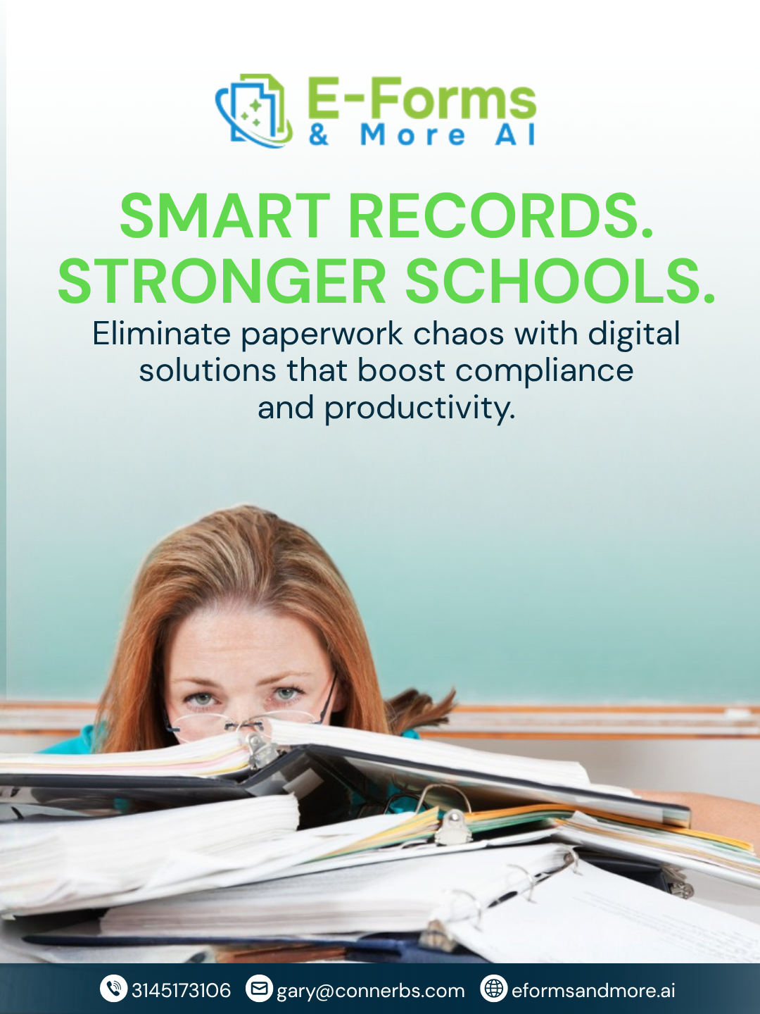 π« School districts thrive when educators can focus on teaching, not tracking files. With E-Forms & More A.I., managing records becomes faster, safer, and completely compliant.