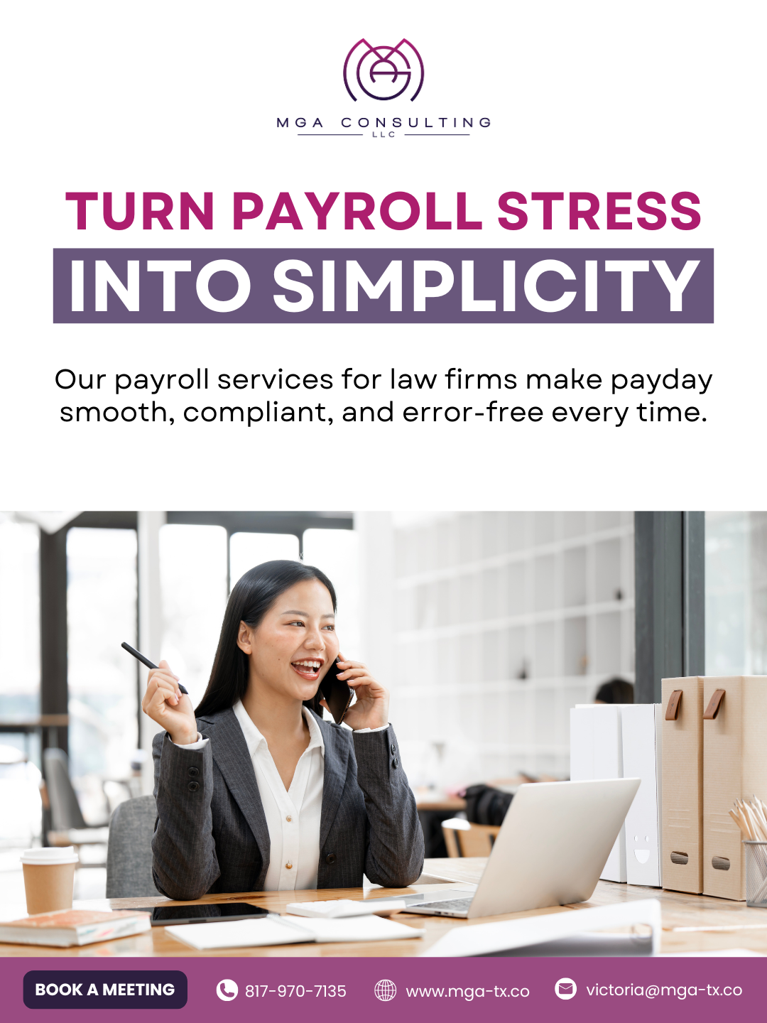 With MGA Consulting, your law firm enjoys compliant, error-free payroll every cycle. Less stress, more focus on winning cases. πΌ