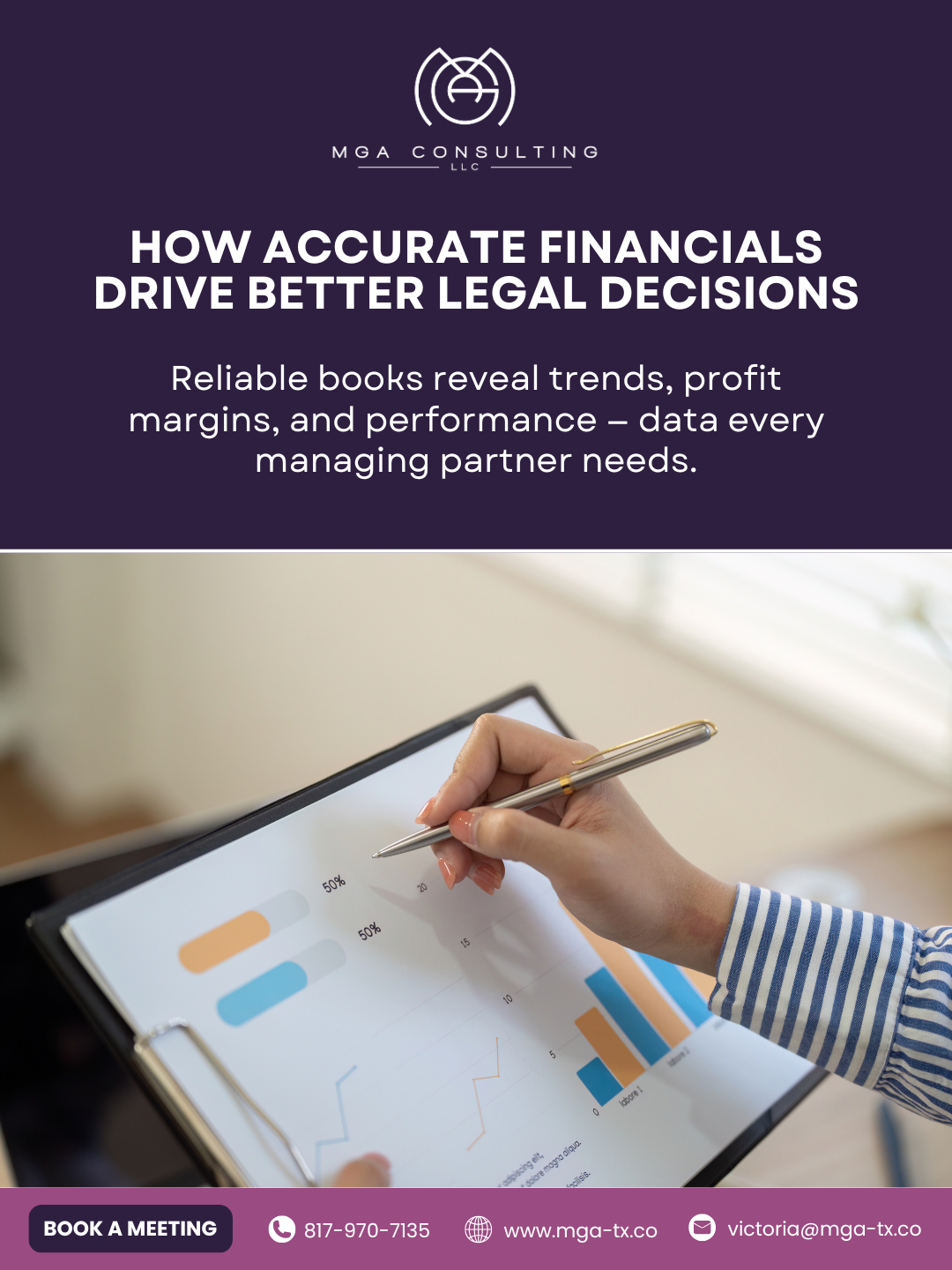 MGA Consulting manages your bookkeeping so your attention stays where it belongs — in the courtroom and with your clients.