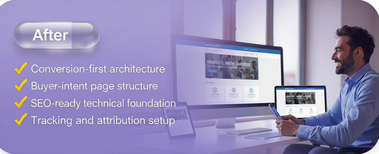 Website-first growth structure. Conversion paths built in. Ready for traffic and demand capture.